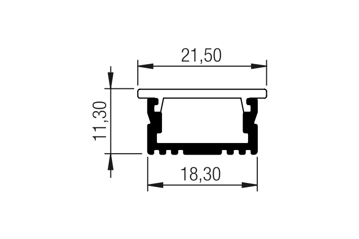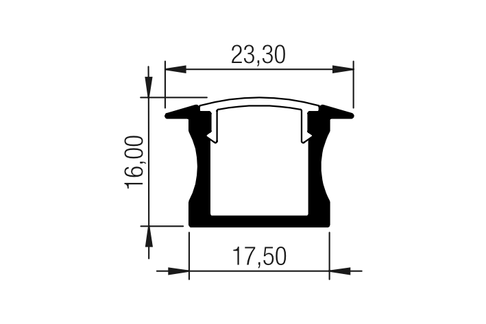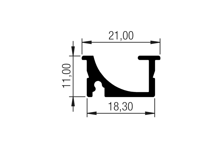 - L’apposita curva del profilo indirizza il fascio di luce all’interno dell’armadio, permettendo così di ottenere una visuale più ampia.
