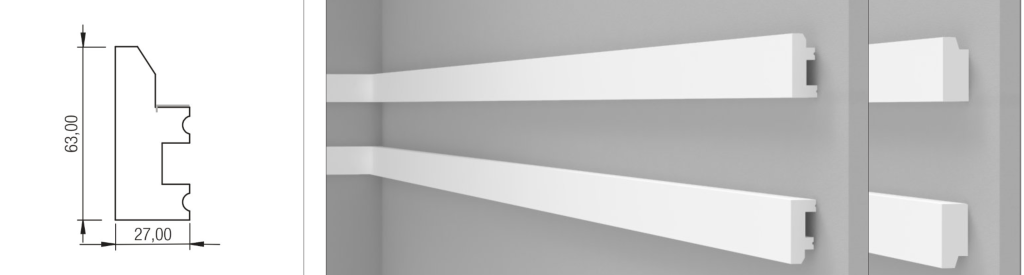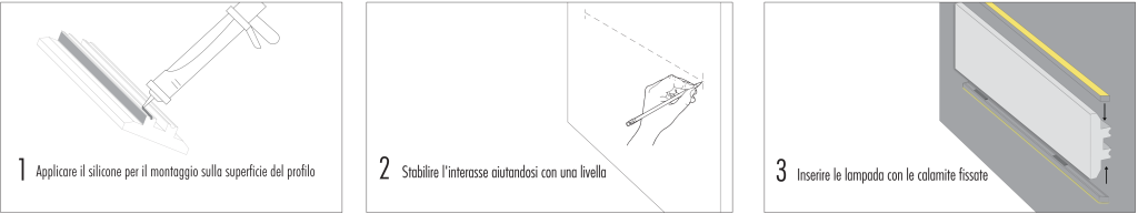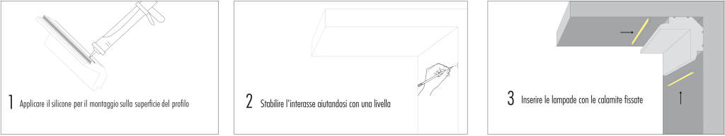 I profili sono interamente tinteggiabili e con la possibilità di essere customizzati partendo dal tipo di lampada al colore della luce.
