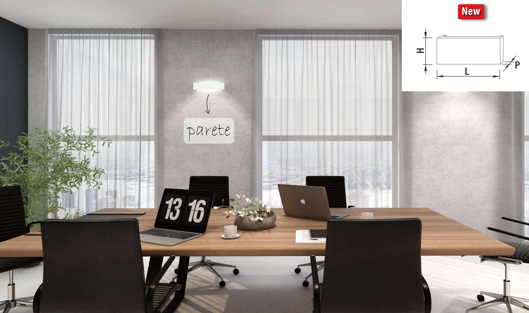 | PARENTESI L | 22 WATT | 3000/4000 K | 84x654x31 mm |