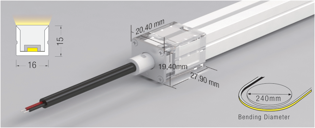 | 16×15 | 10 watt/mt – 15 watt/mt | ≥590 lm/mt – ≥720 lm/mt | 2700/3000/4000 K | 20.5×17.6×1000 mm |